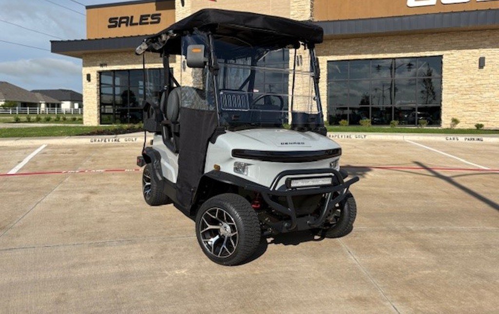 2025 Denago EV Nomad Plus – Lithium — 2025. Denago EV Nomad XL in White. Condition: New. Features include: 80″ Canopy; 9″ Multi-Functional Touchscreen (Speed, Lights, Odometer, Radio, Music, Bluetooth Connection, Back Up Camera, etc.); Adjustable Steering Column; Apple CarPlay and Android Auto Compatible; Backup Camera; Brush Guard; Built-in Speakers; Charge Status Meter; Clear Foldable Windshield with Slidable Sub-windows; Front and Rear Seat Belts; Front Lightbar; Horn; LED Headlights and Taillights; Lithium Battery; LSV Package; Microphone; Radio; Rear LED Tail and Brake Lights; Rear Seat Assembly with Cup Holders – Rear Grab Bar and Seat Support; Rear View Mirror; Side Mirror; Turn Signals; USB Charging Ports.